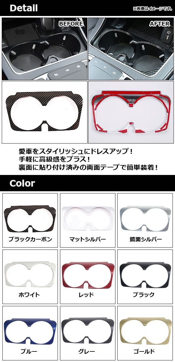 カップホルダーカバー メルセデス・ベンツ Cクラス W205 2015年〜2018年 鏡面シルバー ABS製 AP-IT639-KSI