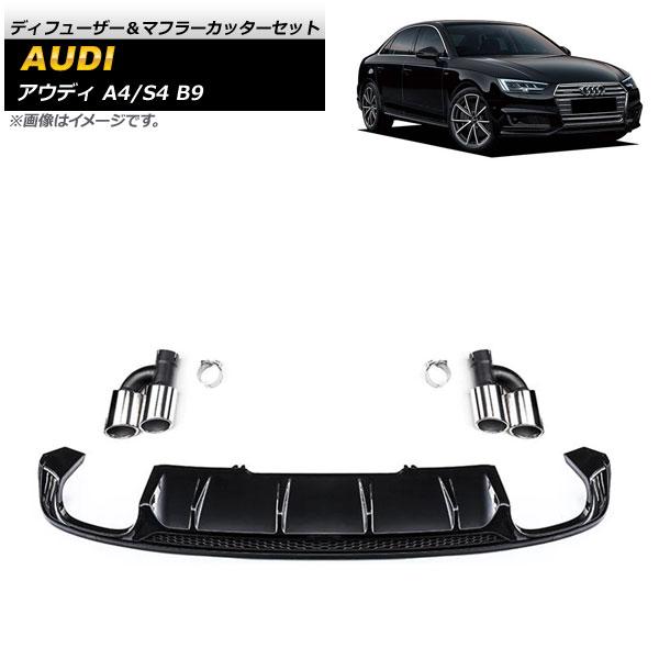 ディフューザー&マフラーカッターセット アウディ A4/S4 B9 Sライン 2016年〜2018年 ブラック ABS樹脂製 AP-XT1236-BK