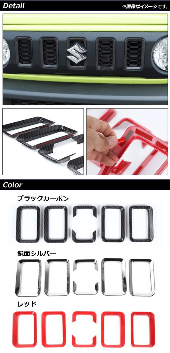 フロントグリルカバー スズキ ジムニー/ジムニーシエラ JB64W/JB74W 2018年07月〜 ブラックカーボン ABS製 AP-FG442-BKC