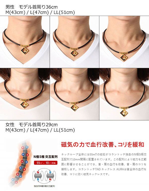 コラントッテ/Colantotte TAO ネックレス AURA プレミアムゴールド 男女兼用 磁気ネックレス【日本正規品】 選べる3サイズ ABAPH サイズ: M L LL