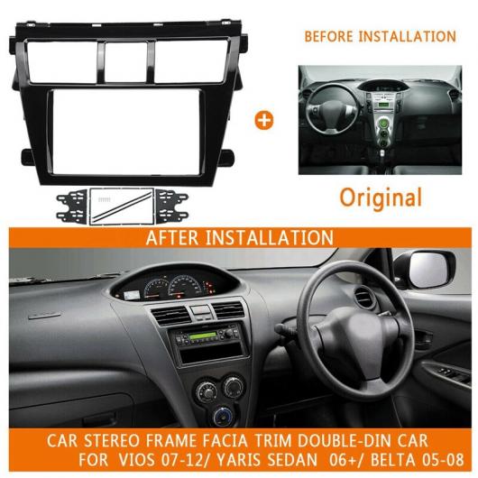 2 DIN ステレオ ラジオ DVD プレーヤー フレーム パネル トリム 適用: トヨタ ヴィオス 2007-2012 ベルタ 2005-2008 ヤリス ヴィッツ セダン 2006 + 光沢 BL ブラック AL-JJ-3876 AL