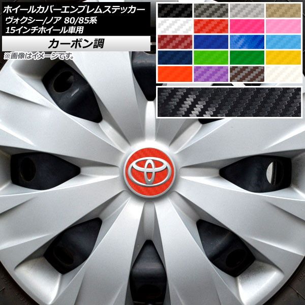 ホイールカバーエンブレムステッカー カーボン調 ヴォクシー/ノア 80/85系 Xグレード対応/ハイブリッド不可/15インチホイール車用 選べる20カラー AP-CF4144 カラー: ブラック ホワイト レッド ブルー イエロー グリーン オレンジ パープル ピンク ネイビー ブラウン ボルドー クリア ゴールド シルバー ガンメタリック マゼンタ ダークグリーン メタリックブルー ライトブルー
