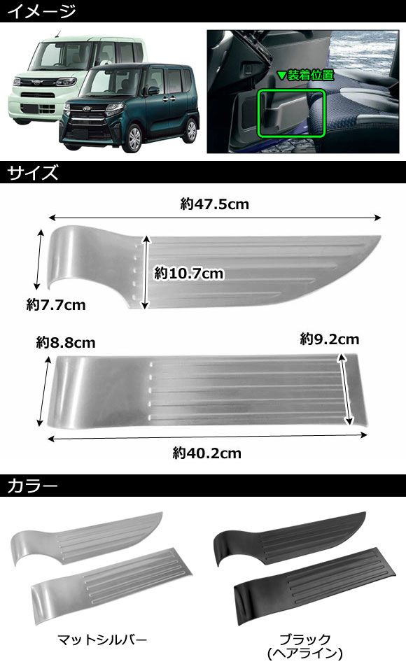 ドアキックガード ダイハツ タント/タントカスタム LA650S/LA660S 2019年07月〜 マットシルバー ステンレス製 入数:1セット(左右) AP-IT1204-SI