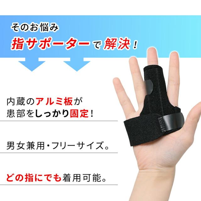右手用指サポーター/右手用/右手専用/指サポーター/サポーター/指/サポート/指固定/突き指/ばね指/腱鞘炎/親指/人差し指/中指/薬指/小指/スポーツ/デスクワーク/男女兼用/フリーサイズ/金属プレート内蔵/アルミ板/ブラック/スマホ/スマートフォン/ゲーム/