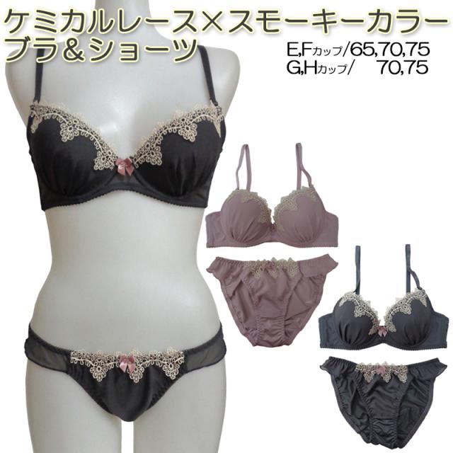 大きいサイズ ケミカルレースブラジャー&ショーツセット ブラジャー ブラ ショーツ セット ブラセット E65 E70 E75 F65 F70 F75 G70 G75 H70 G75 ランジェリー インナー 下着 ナイトウエア レディース 女性 3/4カップ メール便送料無料
