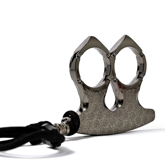 基本素材は亜鉛合金を使用した、ストラップ付きのシンプルな2本指用のメリケンサックです。