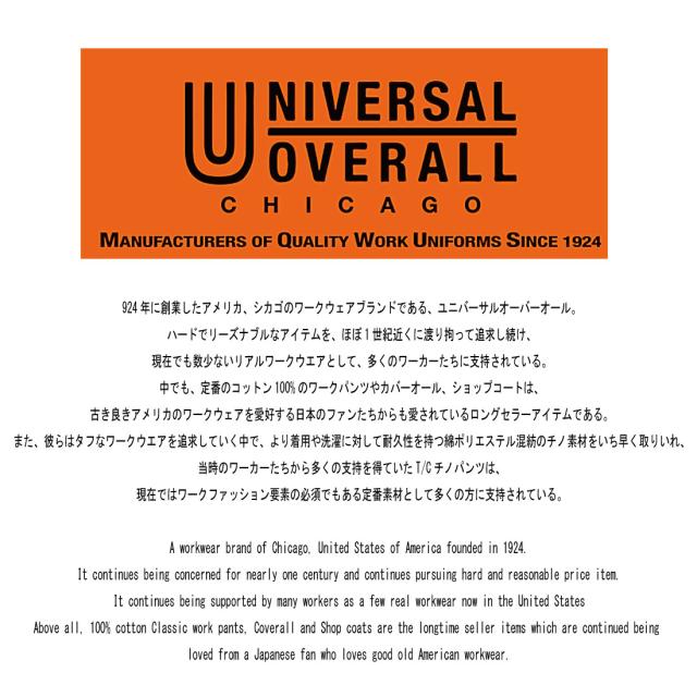 フロントにはUNIVERSAL OVERALLのブランドロゴがピスネームであしらわれています。