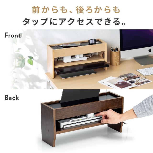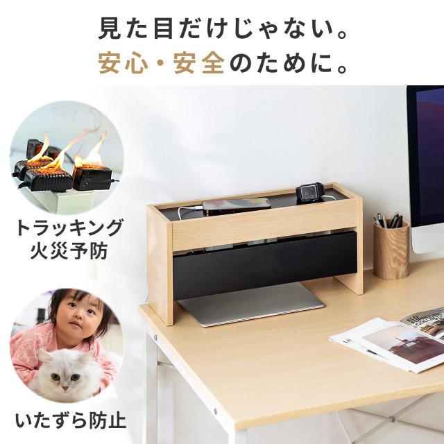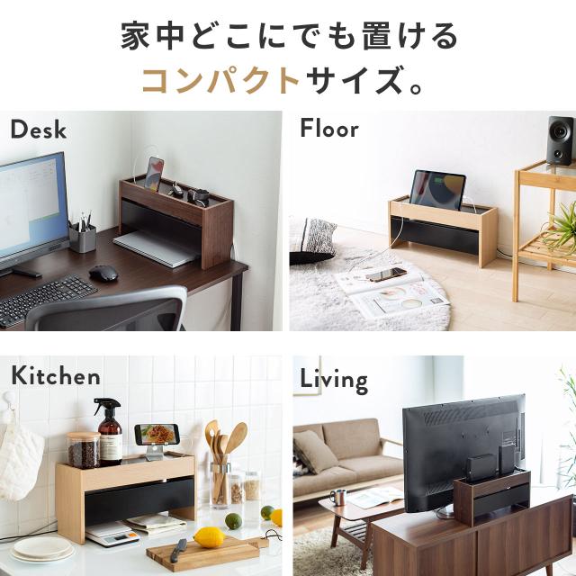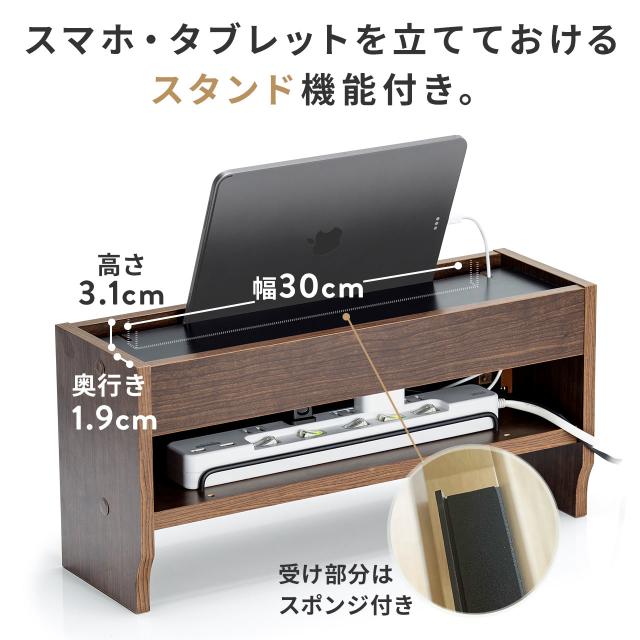 ケーブルボックス 卓上サイズ 木製 スマホスタンド付き ノートパソコン収納 電源タップ コード 収納ボックス[200-CB038]