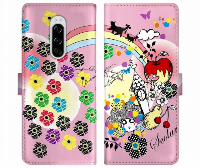 Xperia 1 VII SO-51F/SOG15 ケース 手帳型 ScoLar スカラー スマホケース エクスペリア SO-52F SOG16 SO-52E SO-51E SO-52D SO-54C スマホカバー スタンド付 多機種対応 メルヘン お花 スカラコ りんご