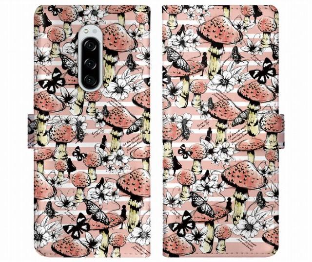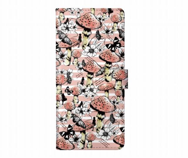 Xperia 10 VI SO-52E/SOG14 ケース 手帳型 ScoLar スカラー スマホケース エクスペリア SO-52F SOG16 SO-51F SO-51E SO-52D SO-54C スマホカバー スタンド付 多機種対応 キノコ チョウ 花 ベビーピンク