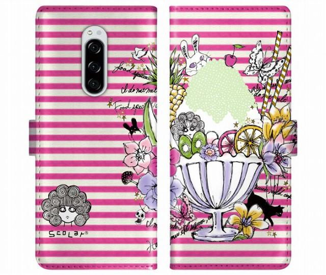 Xperia 10 VI SO-52E/SOG14 ケース 手帳型 ScoLar スカラー スマホケース エクスペリア SO-52F SOG16 SO-51F SO-51E SO-52D SO-54C スマホカバー スタンド付 多機種対応 フルーツ パフェ カキ氷 ネコ