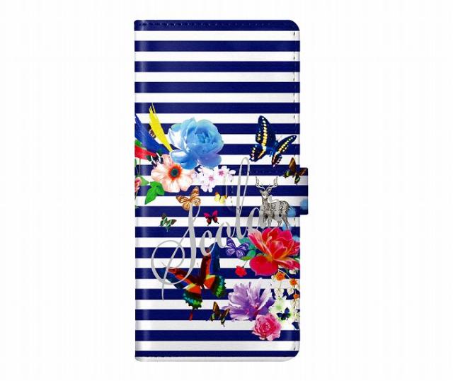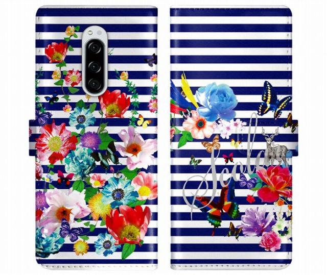 Xperia 1 VI SO-51E/SOG13 ケース 手帳型 ScoLar スカラー スマホケース エクスペリア SO-52F SOG16 SO-51F SO-52E SO-52D SO-54C スマホカバー スタンド付 多機種対応 蝶 花 フラワー ボーダー