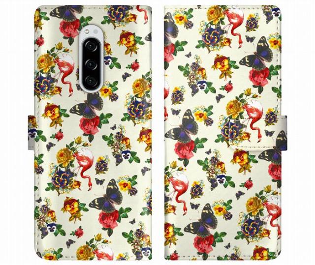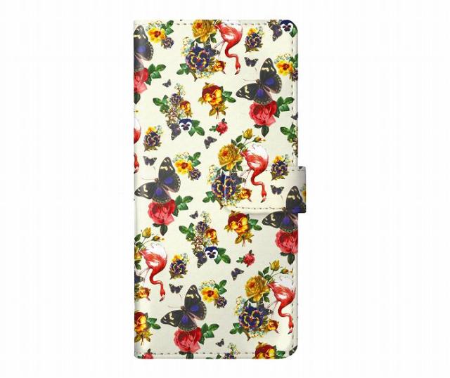 Xperia 1 VI SO-51E/SOG13 ケース 手帳型 ScoLar スカラー スマホケース エクスペリア SO-52F SOG16 SO-51F SO-52E SO-52D SO-54C スマホカバー スタンド付 多機種対応 フラミンゴと蝶 フラワー柄