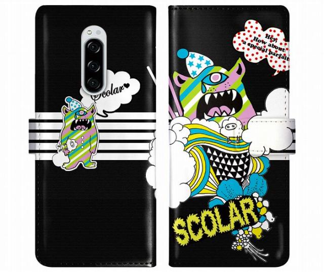 Xperia 1 VI SO-51E/SOG13 ケース 手帳型 ScoLar スカラー スマホケース エクスペリア SO-52F SOG16 SO-51F SO-52E SO-52D SO-54C スマホカバー スタンド付 多機種対応 オバケキャラ ブラック ロゴ