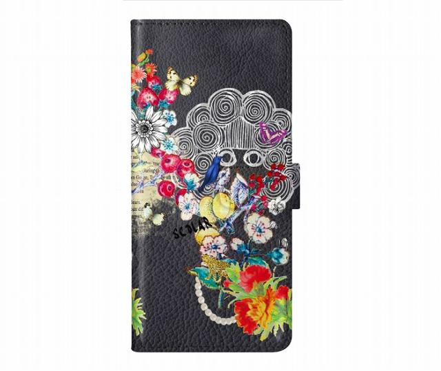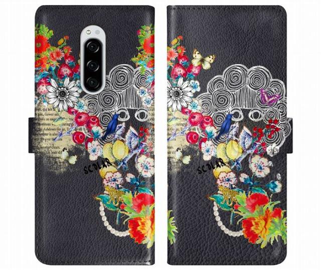 Xperia 1 VI SO-51E/SOG13 ケース 手帳型 ScoLar スカラー スマホケース エクスペリア SO-52F SOG16 SO-51F SO-52E SO-52D SO-54C スマホカバー スタンド付 多機種対応 ブラック フラワー フルーツ