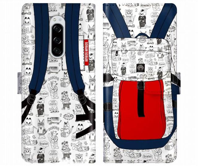 Xperia 1 VI SO-51E/SOG13 ケース 手帳型 ScoLar スカラー スマホケース エクスペリア SO-52F SOG16 SO-51F SO-52E SO-52D SO-54C スマホカバー スタンド付 多機種対応 レッド リュックサック 猫いっぱい