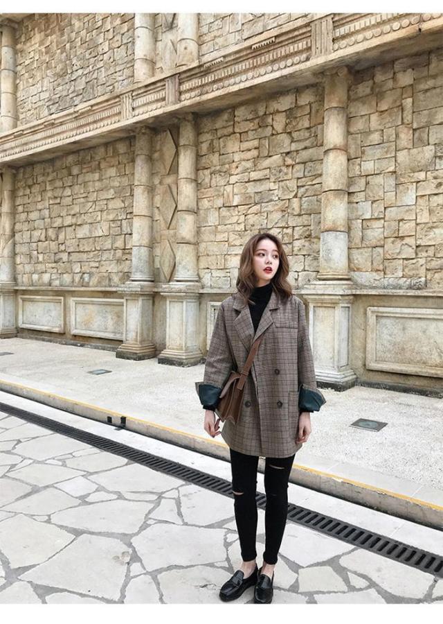 送料無料 レディース チェック ブラウン チェスター コート ウール混 アイボリー グレー ロングジャケット レディースジャケット ウール アウター チェック柄 グレンチェック 秋 冬 春 ジャケット ロング きれいめ ロング丈