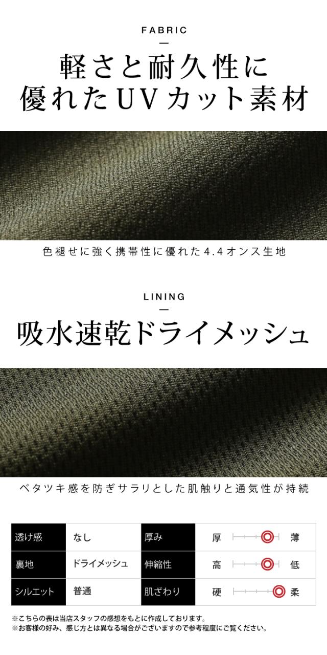 ・表地には、日焼けからお肌を守る「UVカット」機能
