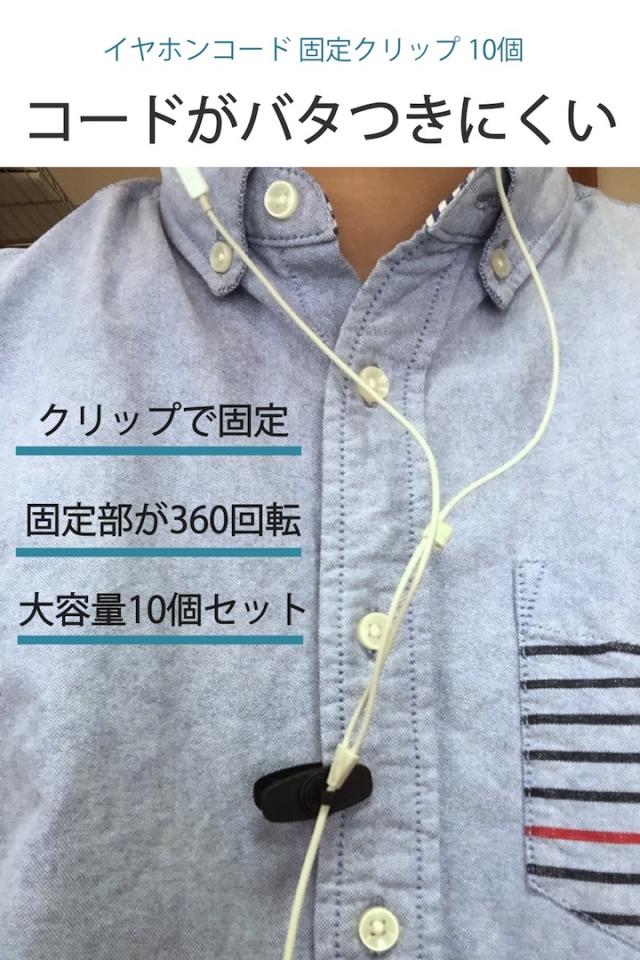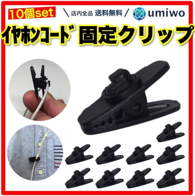 商品名:イヤホンコード 固定クリップ 10個セット イヤホンケーブルを服に固定 インカムマイクやトランシーバーなどマルチに使える