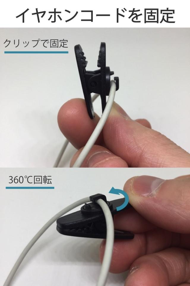 イヤホンやインカムマイクのケーブル(コード)を固定するためのマルチクリップ