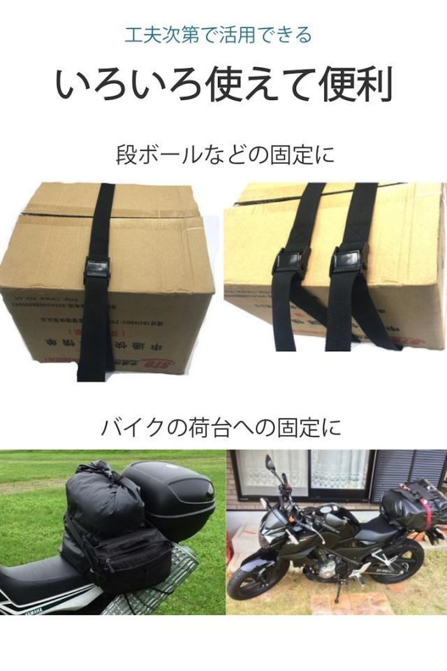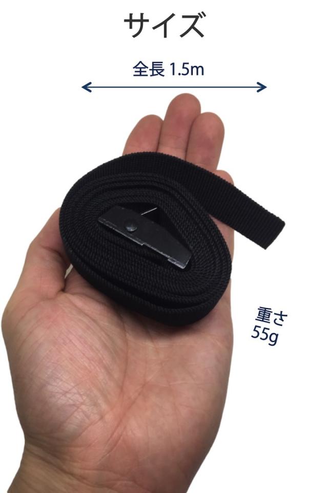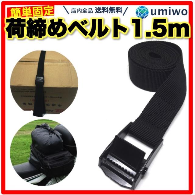 荷締めベルト 1.5m 黒 シンプル 荷物 固定 安全 運搬 車 バイク ツーリング 自転車 カバー バッグ 積載 簡単操作 金具 アウトドア レジャー 荷締め ベルト バックル キャリア 荷物留め