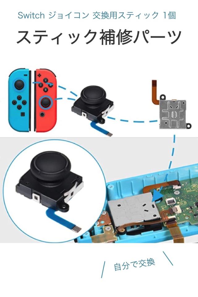switch ジョイコン 交換用 スティック 黒 1個 パーツのみ ニンテンドースイッチ コントローラー 故障 交換 部品 勝手に動く 反応しない 修理 自前で DIY 任天堂 ジョイコンスティック リモコン 修理パーツ 簡単
