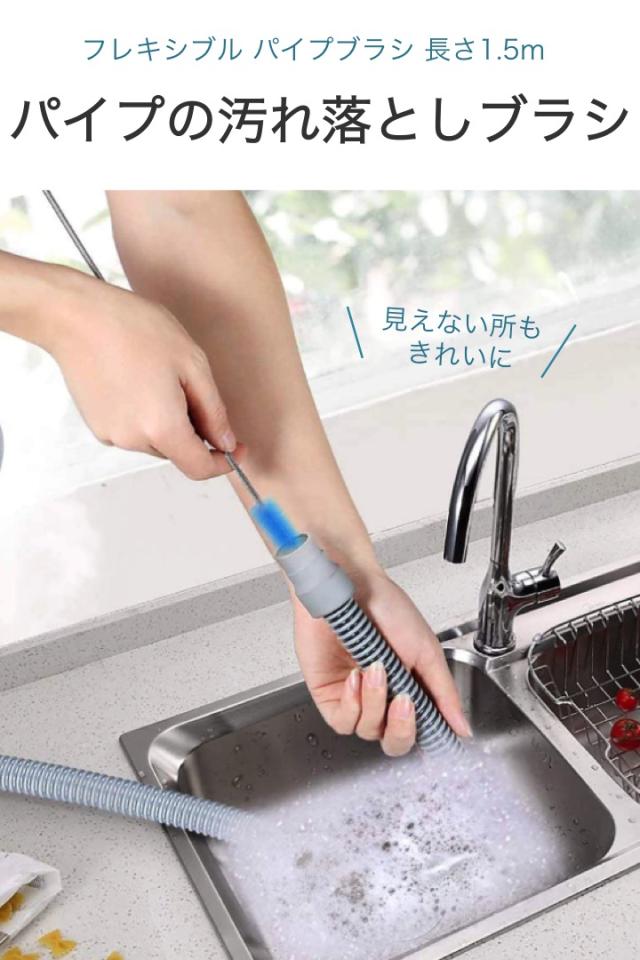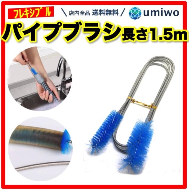 バイプブラシ フレキシブル 1.5m ブラシ2種類 ステンレス ワイヤー ホース クリーナー パイプ 配管 排水管 アクアリウム ホース 水回り 洗浄 パイプクリーナー ワイヤーブラシ 水槽 掃除 お風呂 排水口 奥まで すっきり 詰まり