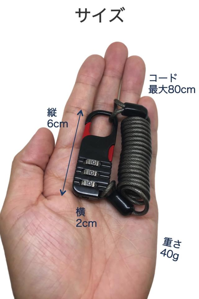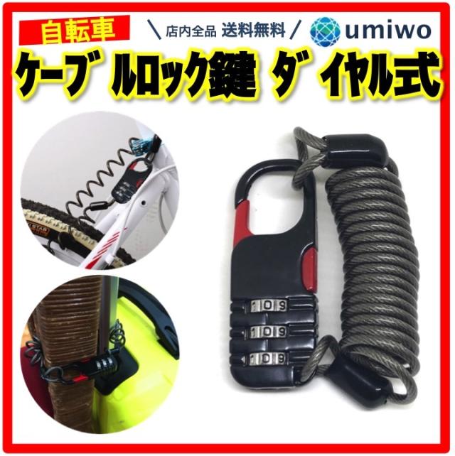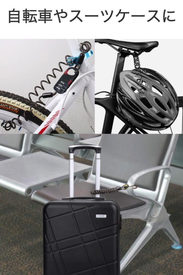 自転車 鍵 ケーブルロック 黒 3桁ダイヤル式 コイルロック 最大80cm 小型コンパクト ワイヤーケーブル 防犯 盗難対策 ヘルメット 荷物 コイル 鍵不要 ロードバイク バイク ベビーカー サドルロック ロック ダイヤル スノボ