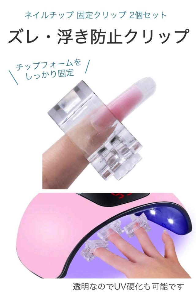 商品名:ネイルチップ 固定クリップ 2個セット セルフネイル ポリジェル アクリルジェル ハードジェル チップフォーム チップ ズレ防止 透明クリア UV 硬化