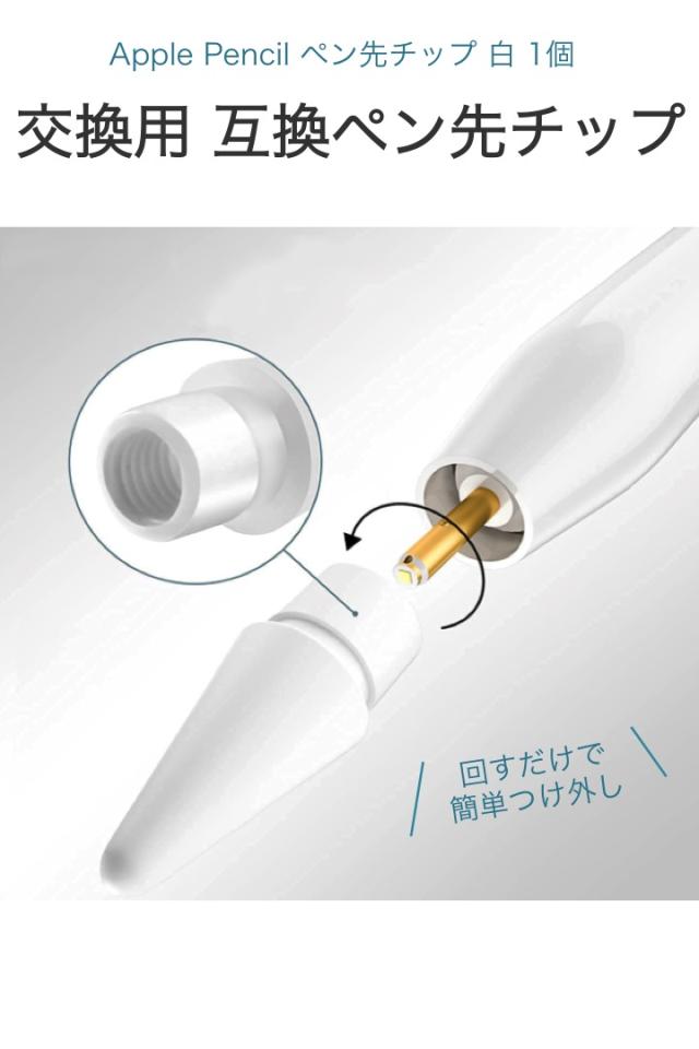 Apple Pencil ペン先チップ 1個 白 第1世代 第2世代 対応 交換用 互換 iPad iPad Pro ペン先 チップ 消耗品 予備 感度 タッチ ペーパーライク 子供 筆圧 感知 アップルペンシル アイパッド applepencil 第一世代 第二世代 シンプル 軽量 摩耗