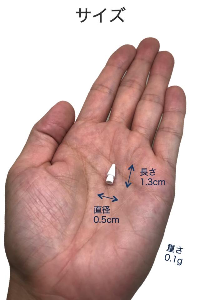サイズ:長さ1.3cm x 直径0.5cm