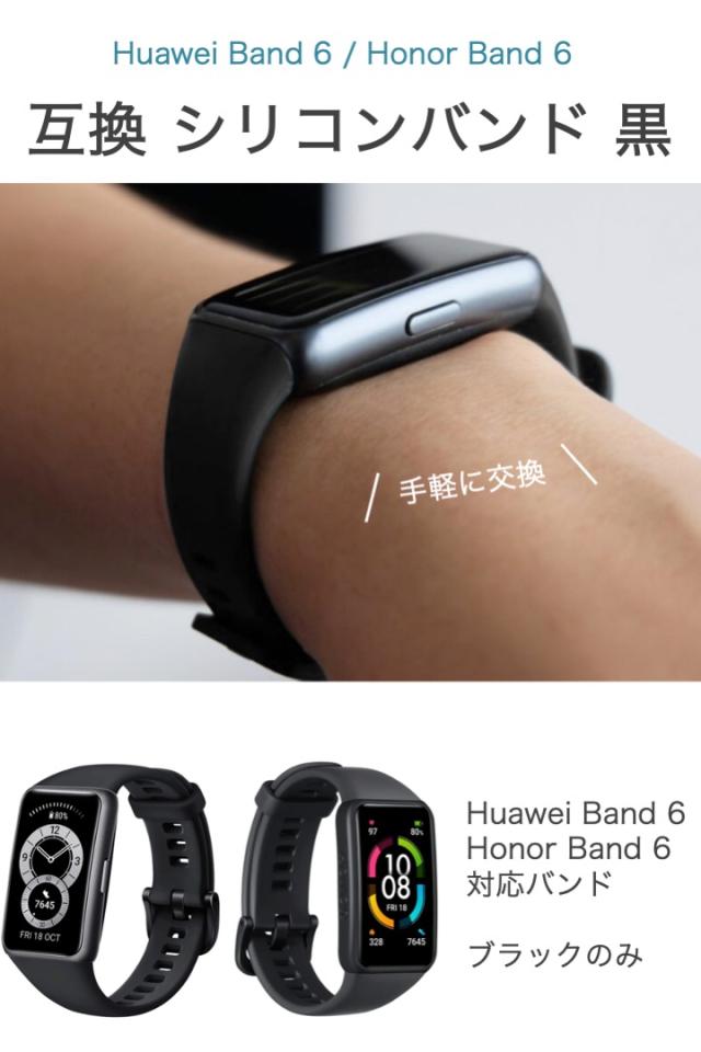 Huawei Band 6 / Honor Band 6 互換バンド 黒 パーツ付き