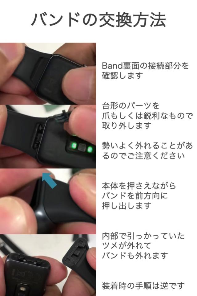 - ・8/27購入、9/2到着 もちろん純正品ではなく中国語の商品ラベルだったので、同国の商品である。 ベルト部分について、商品説明画像のネジリのようにしなやかではなく、プラスチック感のある固めの素材である。(接続部分のバーツは3つ付属、1つは予備?当然純正品パーツでも合う) 反面、純正品のしなやかな素材は肌に引っ付く感じがあるので、これが嫌な人はいいのではないだろうか。まだ耐久性耐水性は試しておらず交換して1日目だが、これもありなのかと思っている。