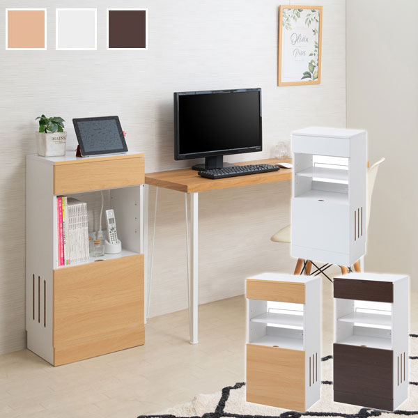 ホワイト/ナチュラル/ダークブラウン/ケーブル収納 省スペース ネットワーク機器 フラップ式扉 カウンター下収納