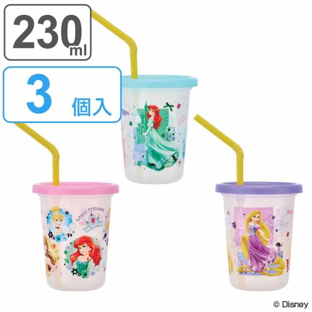 タンブラー ストロー付き 3個入り 230ml プリンセス プラスチック ( 食洗機対応 フタ付き コップ カップ ストローコップ 日本製 キャラクター 軽量 アウトドア パーティー 子ども キッズ ディズニー )