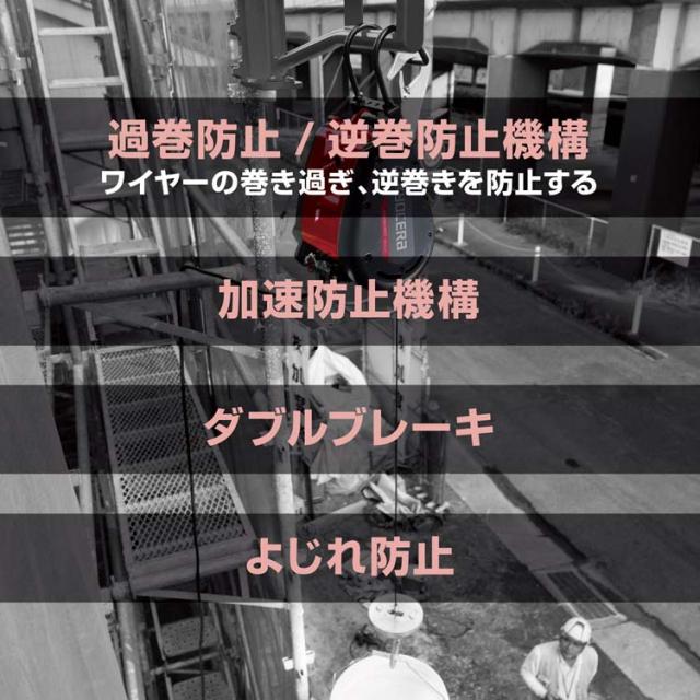 | ・付属品:操作スイッチ(コード10m)・ワイヤーロープ(径4mm*31m)・ウェイト・スイベルフック |