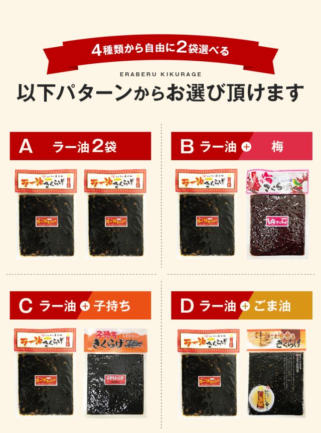 食べるラー油きくらげ ごま油 子持ち 梅 180g×2袋 送料無料 かどや 辣油 佃煮 ご飯のお供 キクラゲ 米 に合う おつまみ ポイント消化 食品 お土産 ギフト 人気には 訳あり 1000円ぽっきり [メール便]