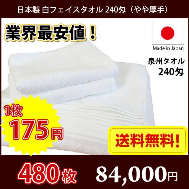 【送料無料】業界最安値! 480枚セット 日本製 泉州 白タオル やや厚手 240匁 / タオル 普通のタオル 白いタオル 業務用タオル フェイス 白 ホワイト 業務用 理髪店 掃除 雑巾 まとめ買い 国産