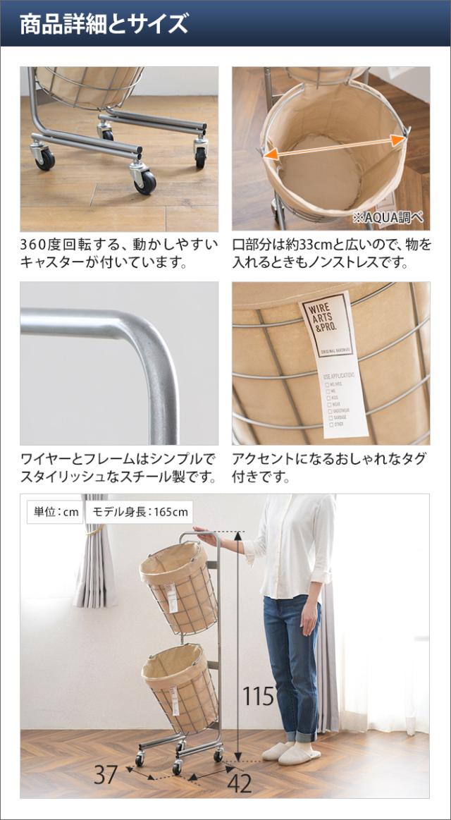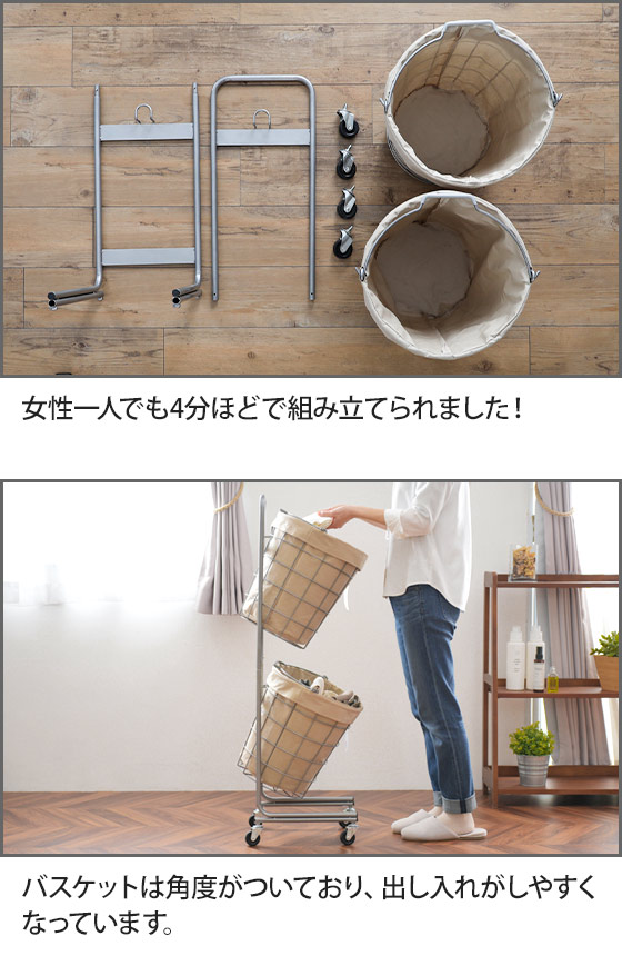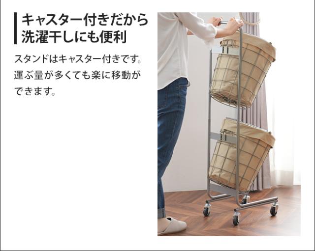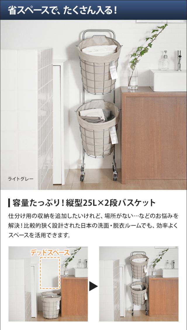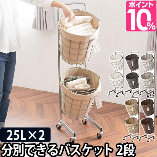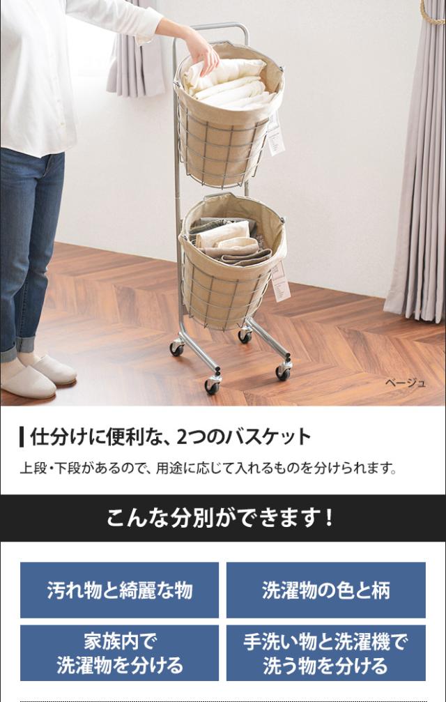 ランドリーバスケット ダブル 25L キャスター 2段 スリム 大容量 洗濯 おしゃれ 洗える 洗濯カゴ