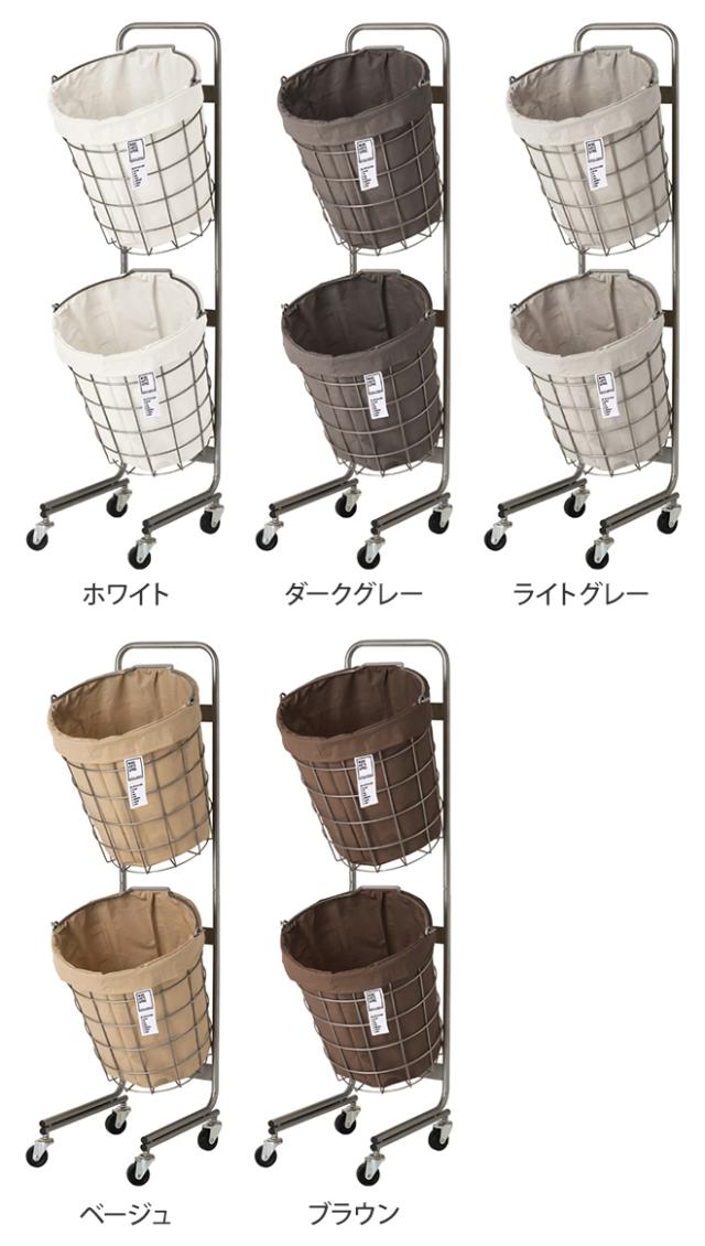 ランドリーバスケット LAUNDRY ROUND BASKET DOUBLE with CASTER 25L / 2BOX ランドリーラウンドバスケット ダブル 25L キャスター 2段 スリム 大容量 洗濯 白 ホワイト グレー
