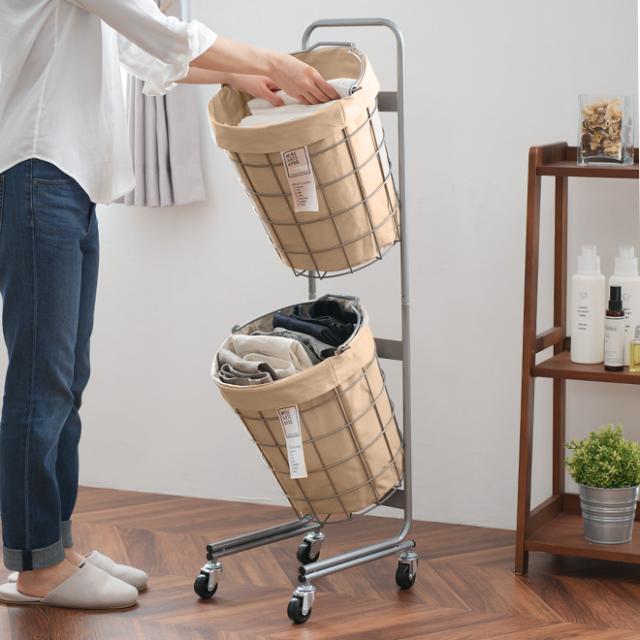 省スペースで効率よく収納!2段式ランドリーバスケット