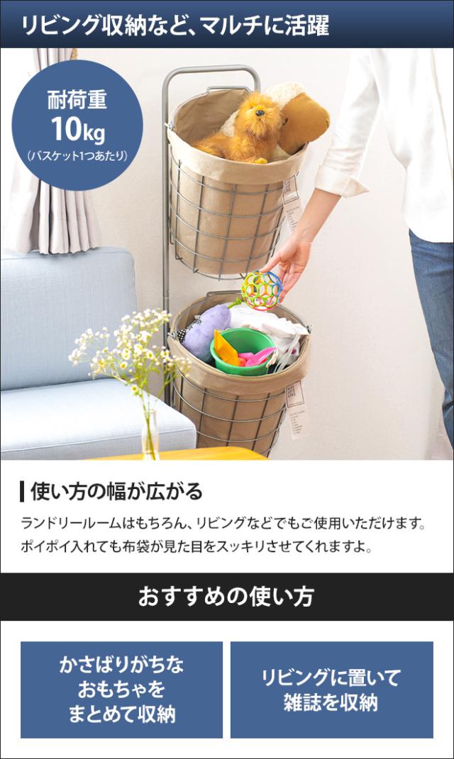 用途に応じて仕分けができる縦型ランドリーバスケット。