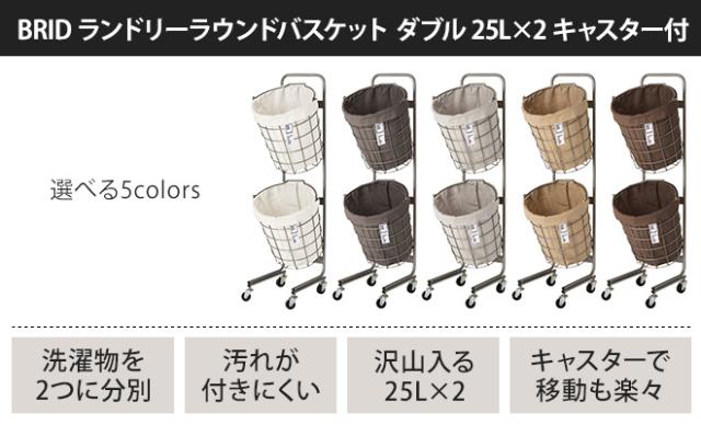 BRID(ブリッド) ランドリーラウンドバスケット ダブル 25L×2 キャスター付洗濯物を色や柄で分けたり、綺麗なものと汚れたものを分けたいときにも便利です。