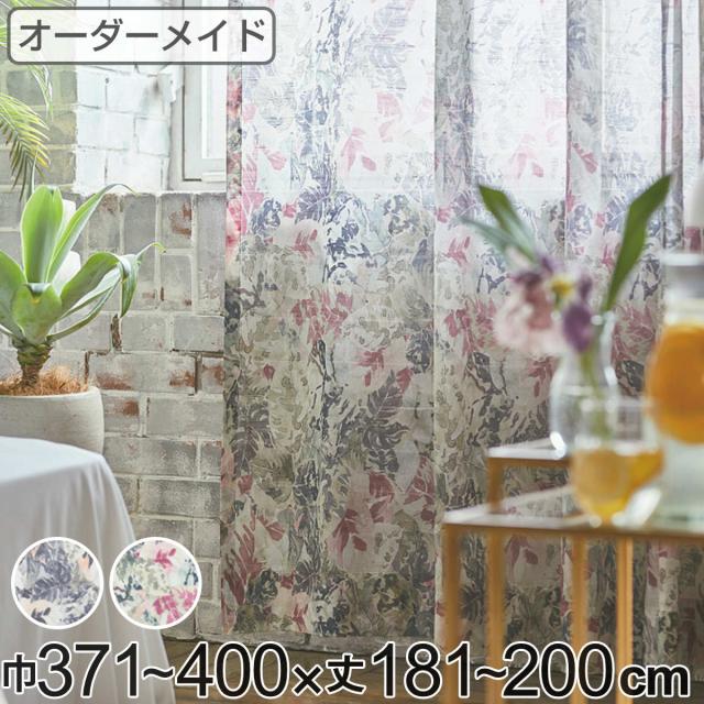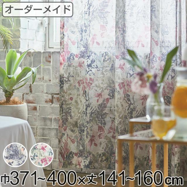レースカーテン オーダーカーテン ボタニカナウ 1.5倍ヒダ 巾371〜400×丈90〜120cm ( オーダー サイズオーダー オーダーメイド カーテン レース 2つ山 1cm単位 おしゃれ 防炎 洗濯 可能 洗える 窓 出窓 日本製 リーフ柄 )