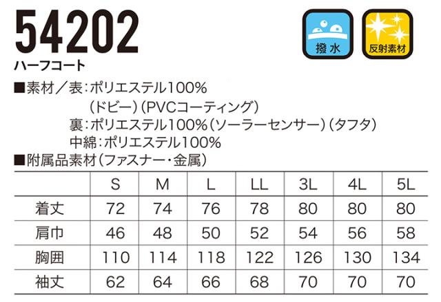 防寒着 防寒コート ハーフコート 54202 クロダルマ ジャケット ジャンパー ブルゾン 秋冬 保温 防風 撥水 反射テープ メンズ 防寒服 作業着 作業服