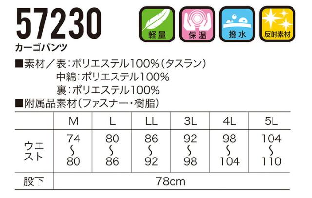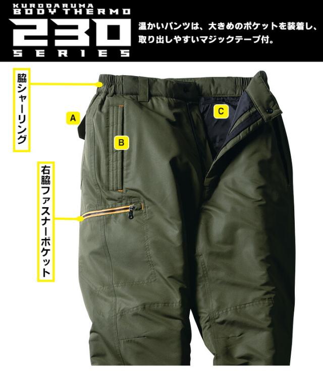 カーゴパンツ 57230 クロダルマ ズボン 秋冬 軽量 保温 撥水 反射素材 230シリーズ メンズ 防寒着 防寒服 作業着 作業服