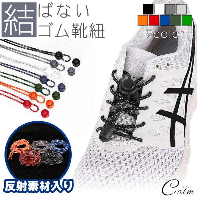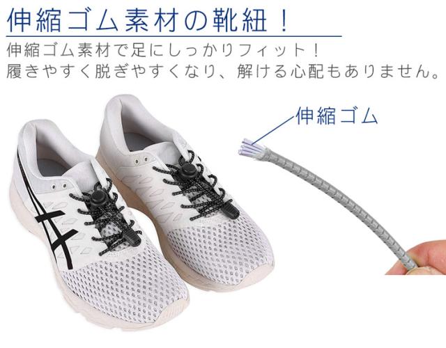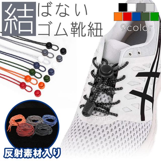 靴紐 ゴム靴ひも 結ばない靴紐 ゴム 反射 伸縮 スポーツ アウトドア メンズ レディース キッズ シニア フリーサイズ フィット スニーカー シューズ 靴