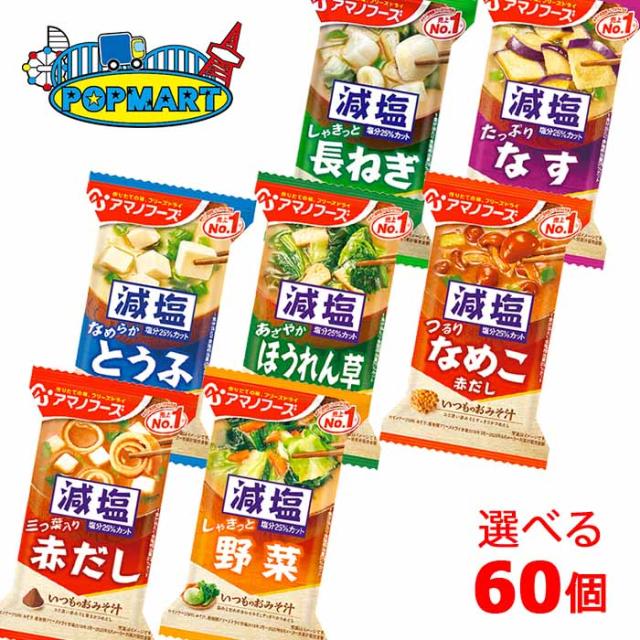 アマノフーズ 減塩いつものおみそ汁 10食単位で選べる合計60食セット フリーズドライ 送料無料 減塩 即席 非常食 おかず 備蓄
