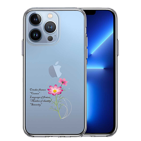 iPhone13 Pro ケース ハードケース ハイブリッド クリア 一輪花 10月 コスモス カバー アイフォン スマホケース