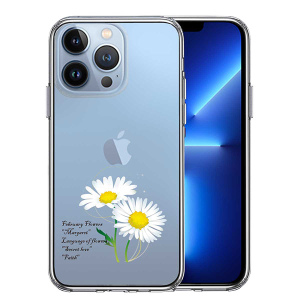 iPhone13 Pro ケース ハードケース ハイブリッド クリア 一輪花 2月 マーガレット カバー アイフォン スマホケース
